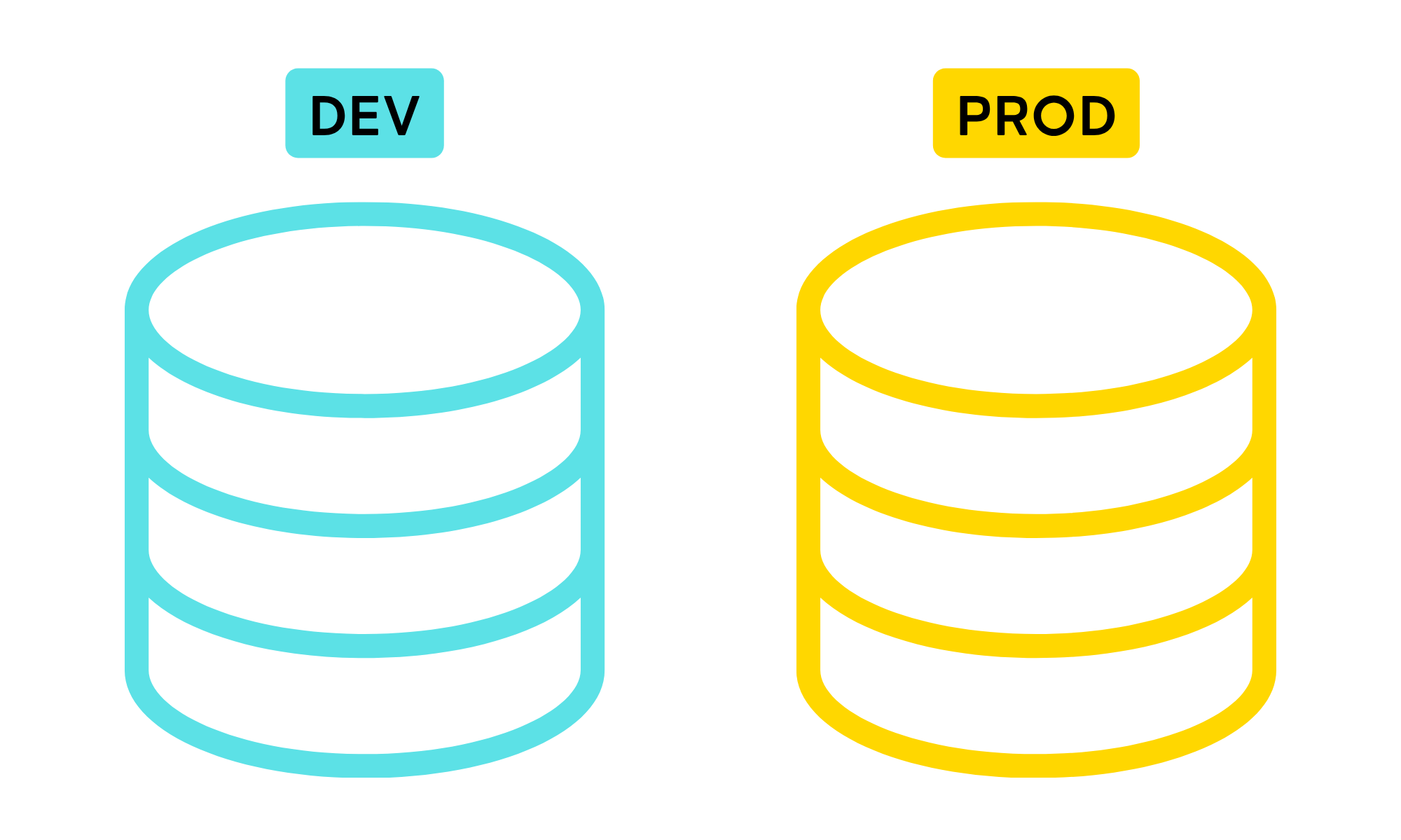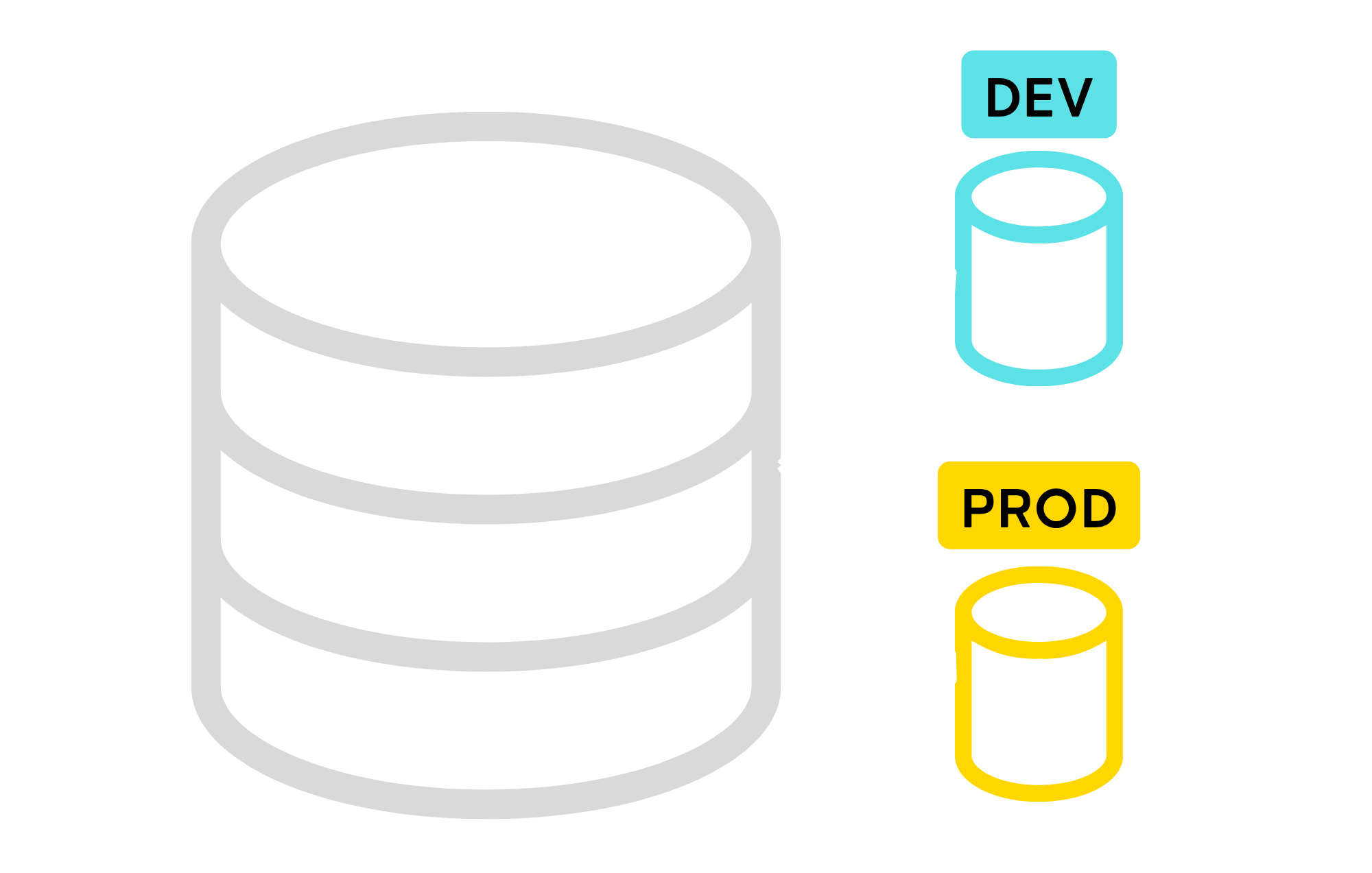 In this approach, you maintain separate databases for each environment - one database for dev and another for prod.