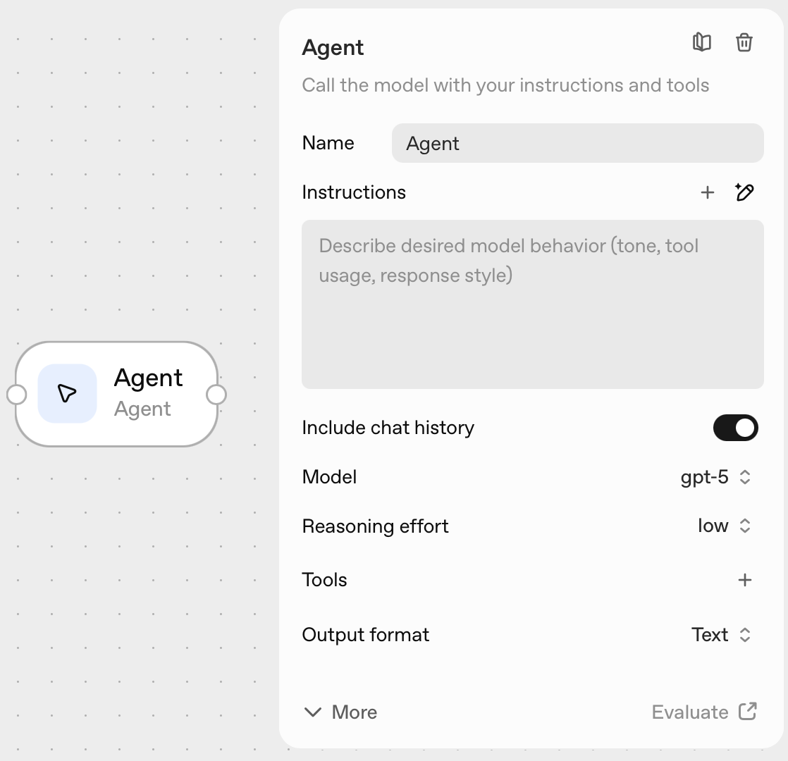 In the OpenAI Agent Buildernodes are the fundamental units of logic and control. Think of them as the “steps” your agent takes to complete a task — each node performs one clearly defined function, and connections between them control the sequence and flow of the workflow.