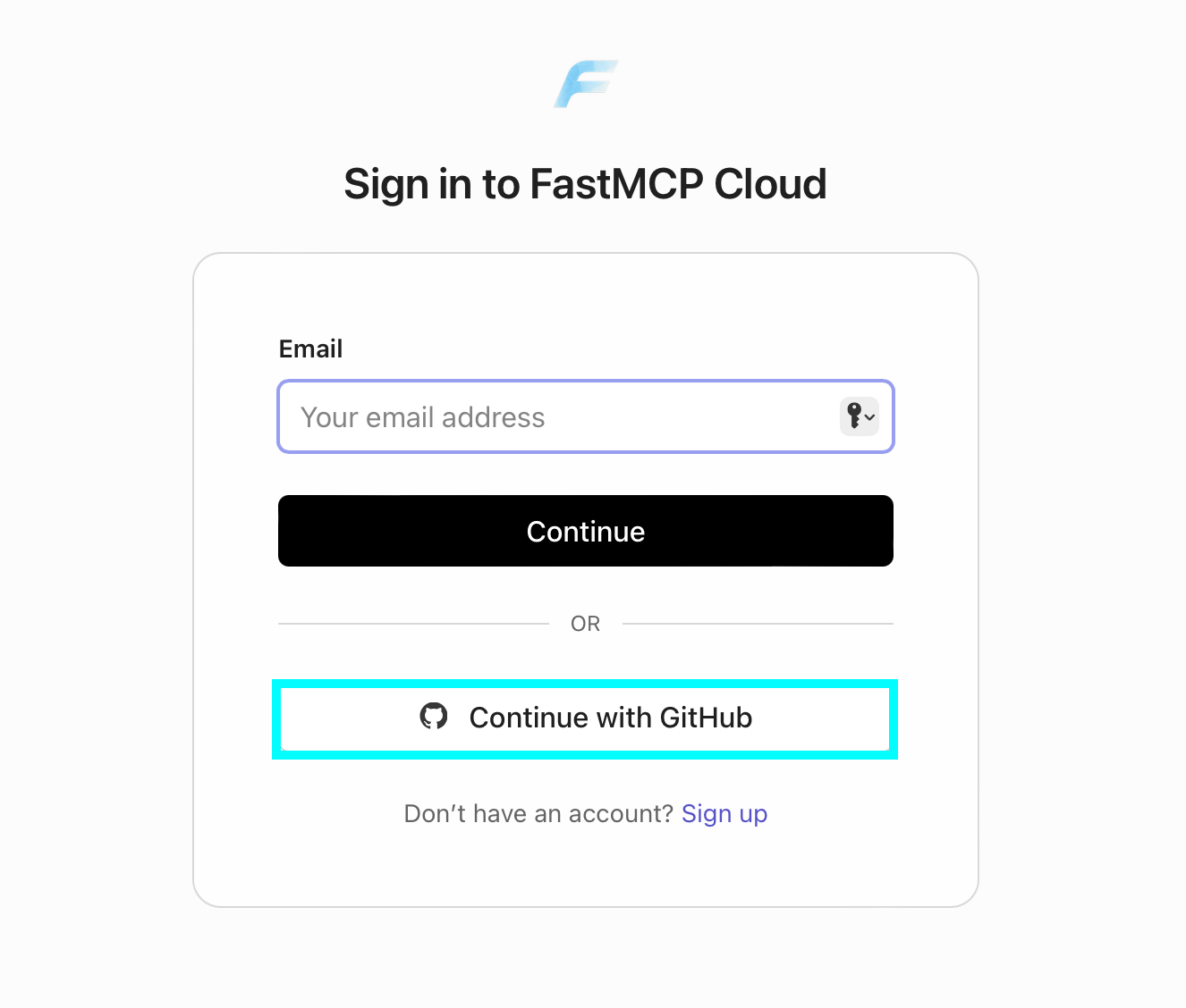 🔑1️⃣ Sign In to FastMCP Cloud with your Github Account