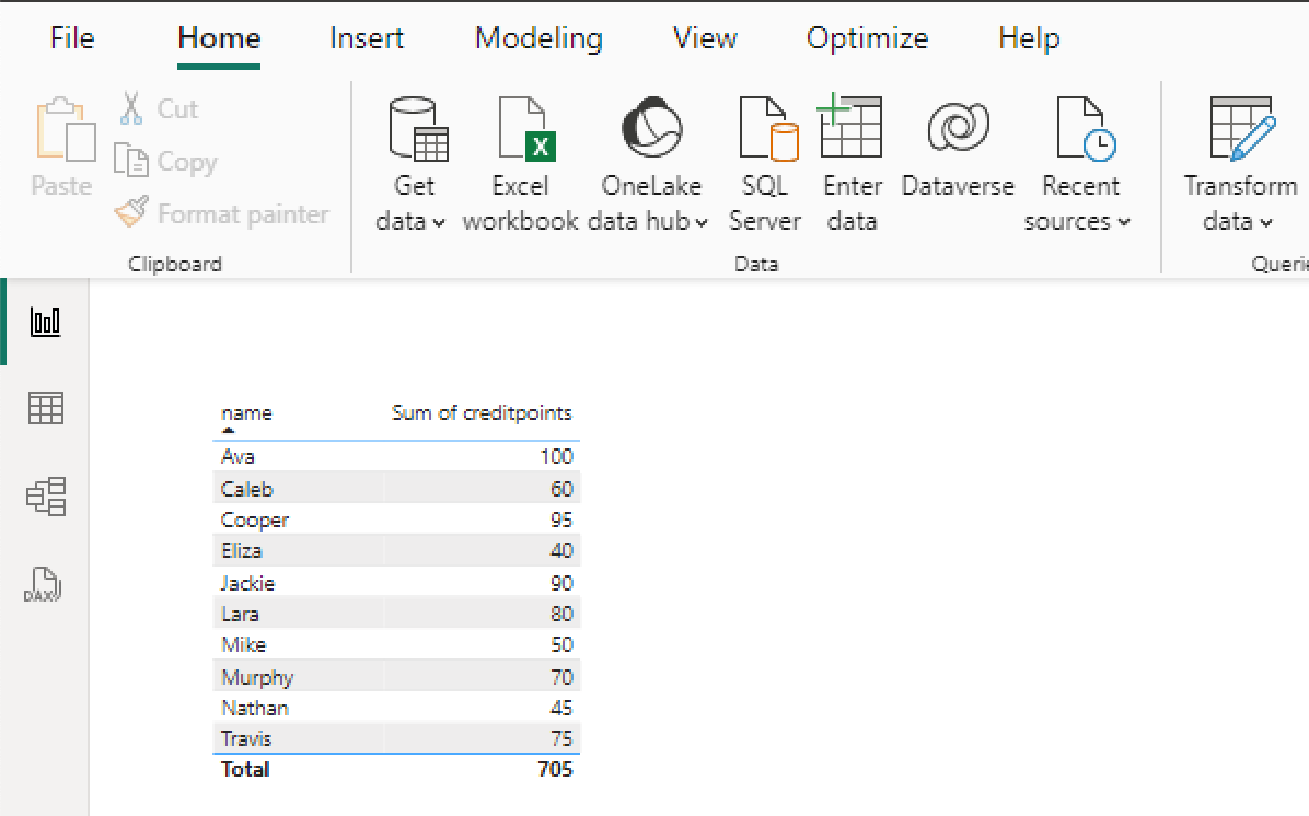 We have loaded the data into Power BI without executing any transformations. The data looks as follows:
