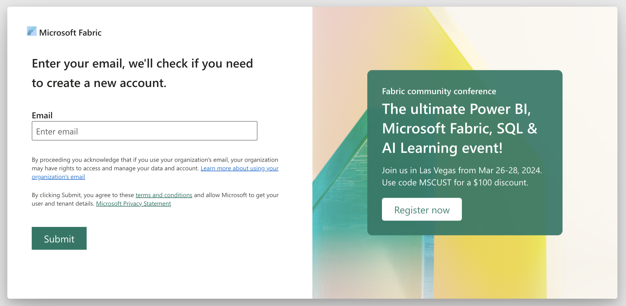 You can register for Microsoft Fabric using the following link:
