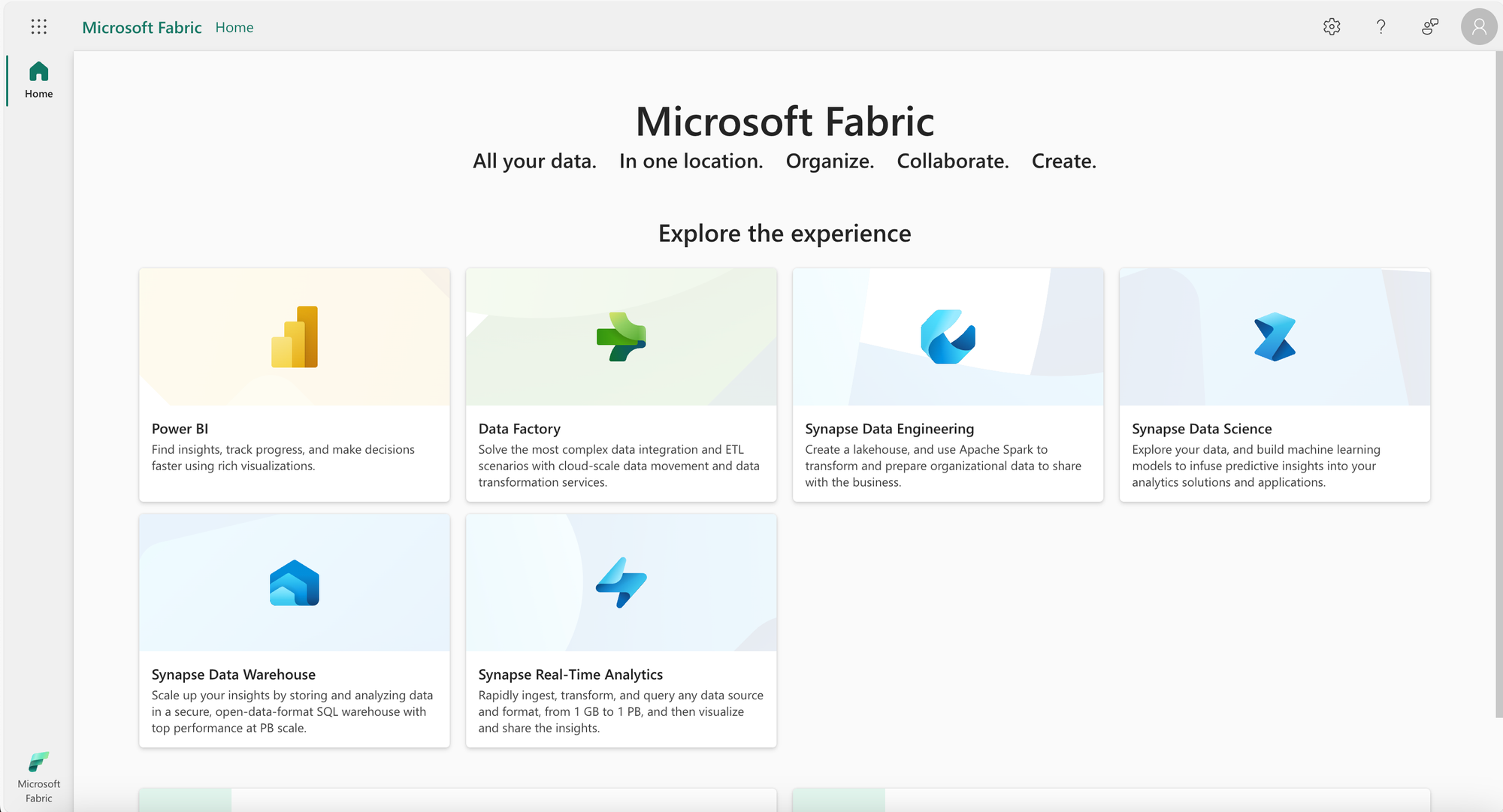 The Fabric portal looks as follows: