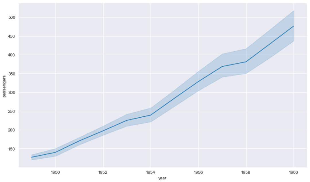 Next, we create a lineplot with the lineplot() function. Additionally, we choose "darkgrid" as figure style.