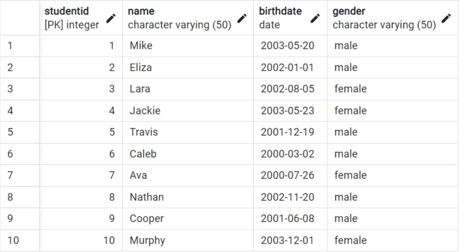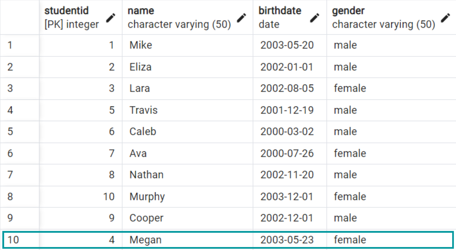 WHERE studentid = 4;We can see that the data has been successfully updated.