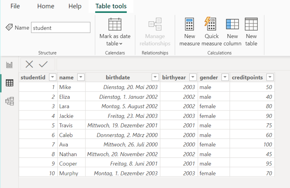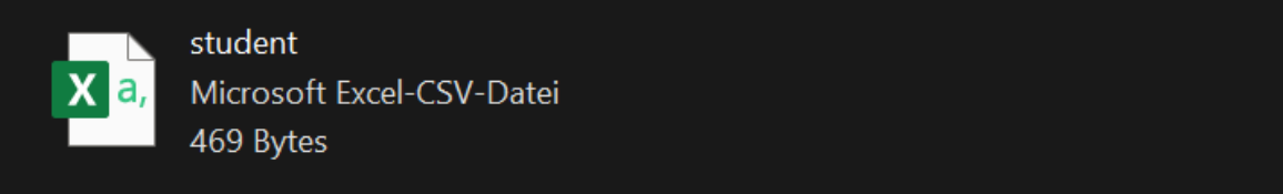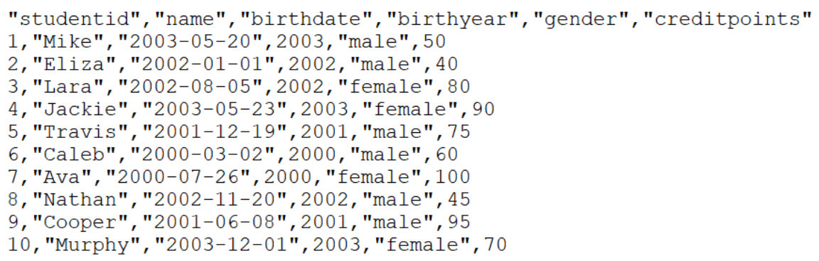 Our data source is the CSV file student. The file contains the following data:
