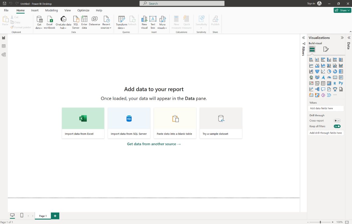 First, we open Power BI Desktop: