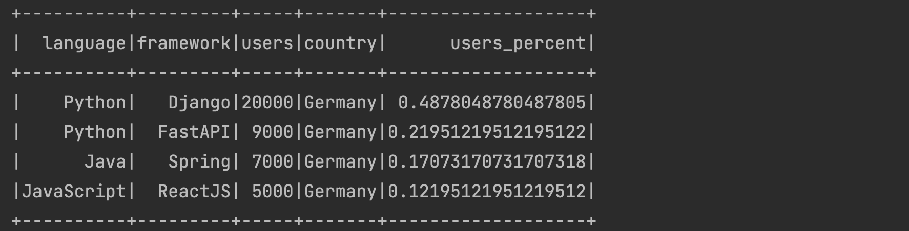Next, we would like to add the column "user_percent" with the percentage of the existing column "users".