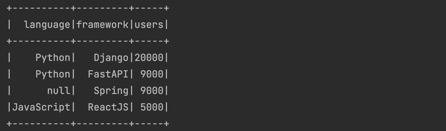 Next, we create the PySpark DataFrame with some example data from a list. To do this, we use the method createDataFrame() and pass the data and the column names as arguments.