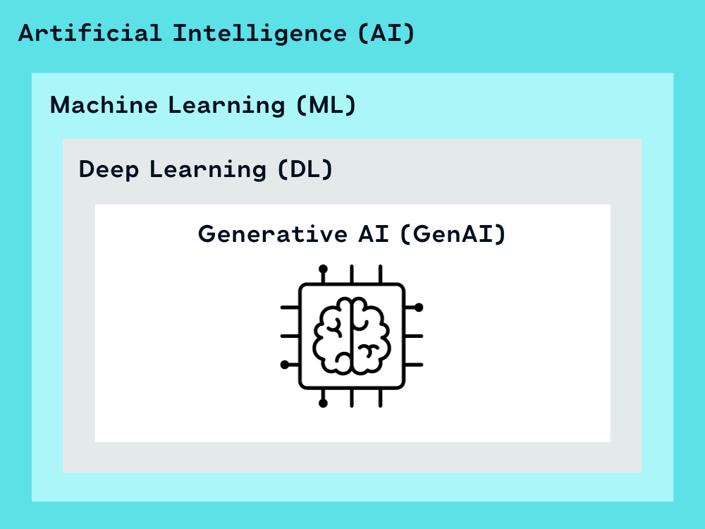 In this tutorial, we want to explain Generative AI (GenAI). In order to do this, we describe both the terms Artificial Intelligence, Machine Learning, Deep Learning and Generative AI as well as the relationships between them.